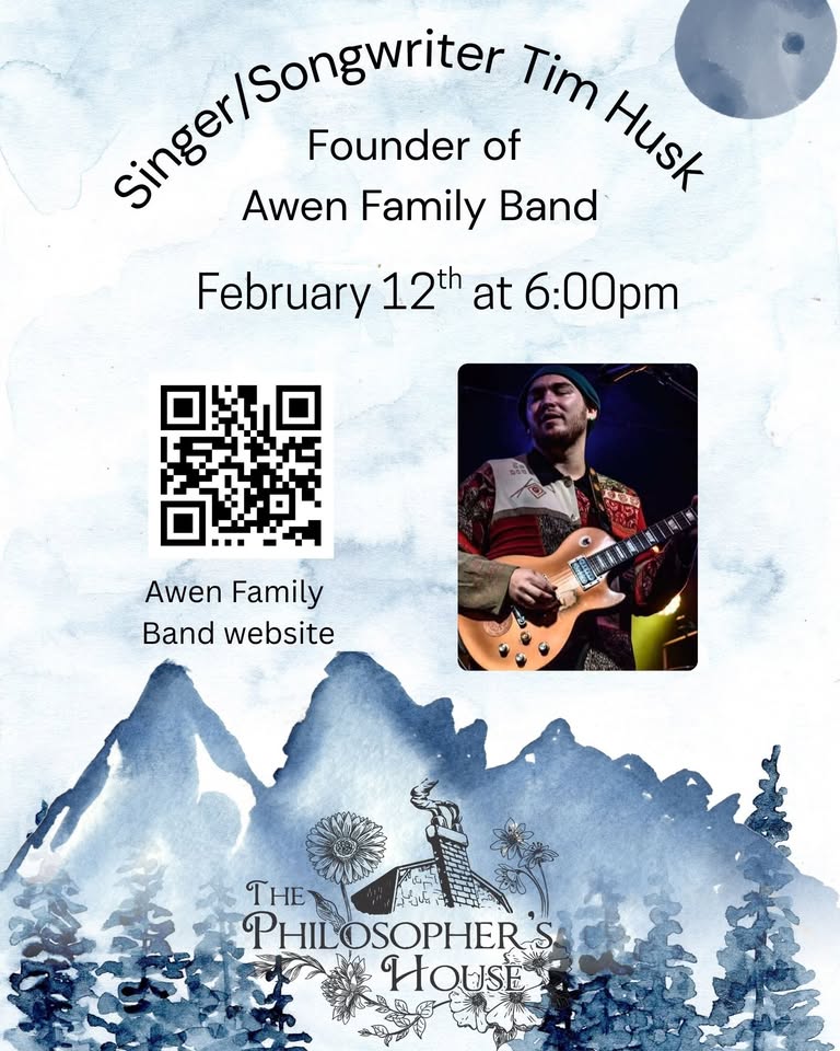 The Philosopher's House 212 N Boone St, Johnson City, TN, United StatesTim Husk is a Virginia-based singer-songwriter (originally from Durham, NC), multi-instrumentalist, and founder of the Awen Family Band, a nationally touring world boogie collective that has featured members of Toubab Krewe, Big Something, FRUTE, Dr. Bacon and many other acts across the country since 2019. Tim blends folk, Celtic, bluegrass, old time, West and North African, and funk influences on acoustic guitar and tenor banjo to create his own unique original sound and landscape for the songs to come through on. He tours nationally and performs solo, featuring "stripped-down" Awen classics and tunes not heard within the Awen Family catalogue, including some of Tim's favorite covers, taking the listener on a soundtrack through his Life in song. How to register:...